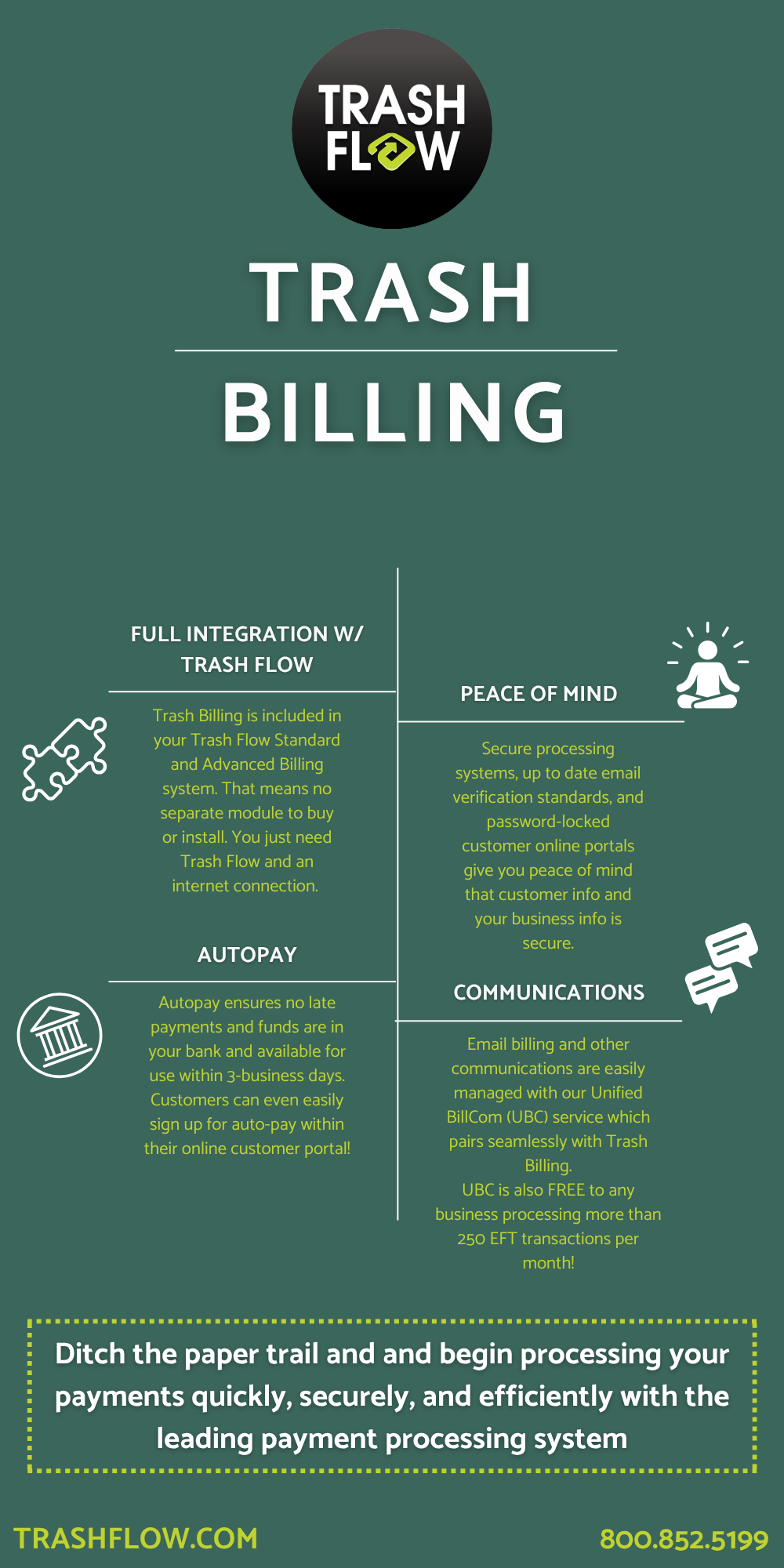 Trash Flows Trash Billing payment processing system and Unified BillCom service has the tools you need to succeed.